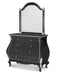 A stunning piece in Black Iguana Finish. This traditionally styled Bombe Chest Mirror adds Hollywood elegance to your decor with arch top.