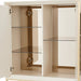 AICO Furniture Madison 2pc Bar KD in Glistening Gold LFR-MDSN500K-827. Succumb to the Madison Bar's charm. Bronzed doors open to reveal a world of shelved secrets, offering an intoxicating blend of sophistication and functionality. Raise a glass to exceptional taste and design. Cheers!