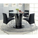Brighten up any dining room with this contemporary round glass dining set. The table sits on a single modern base. The chairs are padded and uphols...