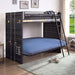 It's a sleek steel set, a hyper-modern bunk bed that reflects the interests of children active in sporting and video games. The unique design offers accommodations fit for would-be action heroes. With an exciting high-security theme, protection for upper bunk occupants is ensured by a substantial guard rail over which a ladder provides easy access. The lower bed incorporates a futon concept and can transform into a sofa configuration. Perfect for growing children.