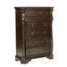 Arbor place bridges the boundary between formal and casual, elegant and relaxed, classic and fresh. A combination of bold and dramatic scaling with soft shapes creates a casual traditional style. Attention to detail is noted in the carved, rope twist accents, scrolled inserts in a burnished brass metal finish and custom designed drop ring and knob hardware.