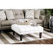 Dorset Ivory/Pattern Ottoman, 36"L X 36"W X 17"H, 27lbs. A square ottoman set atop tall tapered wooden legs, the simplistic pattern adds a touch of color and contrast to set against solid color sets. Put your feet up or set a serving tray down on this handsome piece. Features: Contemporary Ivory Fabric, Solid Wood Frame Lined Pattern Welt Trim Bun Feet Sun & Stain Resistant Revolution Fabric