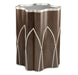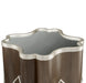 AICO Villa Cherie Chairside Table in Hazelnut N9008222-410. Settle for perfect, and nothing less. The Villa Cherie Chairside Table brings an eclectic mix with a mirrored top, curved scalloped sides, and beautifully bold tones that can go anywhere!