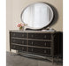 AICO Villa Cherie Dresser Mirror in Hazelnut N9008060-410. We're seeing curves for days! With a subtly shaped case front and sweeping accents, the Villa Cherie Dresser and Mirror creates a beautiful space for clothes, accessories, and decor.