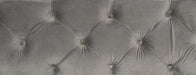 The balance of rusticated accenting and elegant form is exquisitely achieved in the design of the Rachelle Collection. Serving as the focal point of the collection the stately sleigh bed presents an elegant profile for your bedroom, with its gray velvet-covered, rolled, padded headboard and footboard defined by button tufting, nailhead accent and wood framing. The knotty pecan wood veneer that frames the Queen bed features a weathered pecan finish further lending to the classic look of the collection.