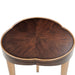 AICO Furniture Camellia Field Chairside Table in Warm Pecan 9090206-400. The Camellia Field Chairside Table offers a perfect balance of form and function with its compact design and elegant details. Its soft, organic shape is complemented by a warm pecan finish and antique gold accents, creating a refined look that enhances any seating area. Designed for versatility, this table is an ideal companion to your favorite chair or sofa.