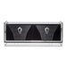 AICO Furniture Carmela Console Table in Glossy Charcoal Sand LFR-CRMA223-830. Designed for bold elegance, the Carmella Console Cabinet stuns with its shimmering black finish and captivating textures. Platinum trims frame the intricate door detailing, while a mirrored glass top and trim amplify its sleek, modern appeal. Set on a gleaming chrome base, this console offers both sophisticated style and ample storage with two cabinets, three shelving spaces, and a discreet drawer.