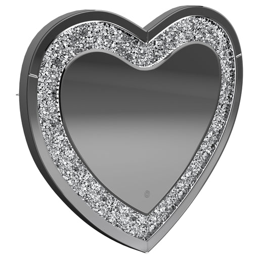 This heart-shaped wall mirror adds sparkle and function to glam-inspired spaces. Framed with mirrored glass and outlined by faceted acrylic crystal...