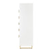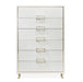 AICO Furniture Palm Gate 6 Drawer Chest in Cloud White 9086070SA-108. The Palm Gate six-drawer chest offers ample storage without compromising on style. Its acrylic body adorned with gold accents and velvet-lined drawers is a testament to its tasteful design.