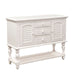 Cottage design is always in fashion. Summer house features the best of cottage with louvered panel accents in an Oyster White Finish