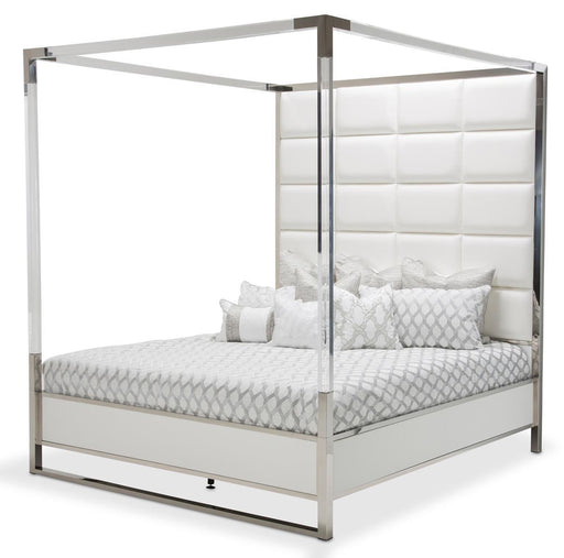 The epitome of fashion-forward design, this king upholstered panel bed is a beautiful blend of comfort and luxury. Shiny chrome-tone accents, a pea...