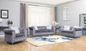 Sahara Modern Style Gray Loveseat with Acrylic legs, 30 x 34 x 66, 90lbs. Cosmos Furniture's Sahara Gray modern style gray Loveseat sits on acrylic legs. The stunning Sahara Gray Loveseat is the perfect addition to any space. Rich gray velvet covers the plush. The comfortable seat is padded with high-density foam and has modern crystal tufted design on the front, on the back and sides. Strength and beauty are guaranteed with a wood frame and turned acrylic legs. The decorative pillows are included for extra support. The crystal nail head trim that outlines the front edge of this beautiful piece to add an extra element of elegance. Throw pillows are included. Matching pieces are sold separately to complete the set. - Modern Style Gray Loveseat - Acrylic legs - Tufted design - Crystal Buttons and Nail Heads - High-density foam - Strong hardwood frame - Drop in-coil - Two (2) Throw Pillows included - Matching pieces sold separately - - -