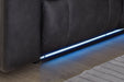 - Ambient red, white and blue LED lighting; touch button control in arm