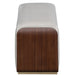 AICO Furniture Houston Accent Bench in Walnut 9095904-416. The Houston Bench offers a sleek, sculptural presence, blending modern elegance with soft, inviting textures. Its streamlined silhouette features gracefully curved edges, complemented by plush velvet upholstery for a refined touch. The wood-paneled sides with a rich walnut finish introduce warmth and contrast, while a gold base trim adds a subtle hint of glamour. Whether placed at the foot of a bed or in an entryway, this bench brings a polished, modern aesthetic to any space.