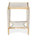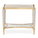 AICO Furniture St.Charles End Table in Dove Gray 9088202-803. The Saint Charles End Table redefines elegance in any setting, featuring a sophisticated wood top that showcases the stunning natural grain of its veneer. This exquisite piece is gracefully inset onto a bronze frame, offering a striking contrast and adding a layer of rich texture and warmth to the room. Its design seamlessly combines the rustic charm of natural wood with the refined durability of bronze, making it a versatile addition to both contemporary and traditional decors.