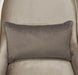 - Chair is designed with sloping arm rails, a rounded backrest, and Porcini velvet