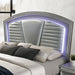 MADDIE Cal.King Bed, 94 7/8"L X 86 5/8"W X 70"H, 330lbs. Create a room made for a princess with this bedroom set from the Maddie Collection. The curved headboard is padded and upholstered in a horizontally-tufted leatherette, emphasizing the pearl white finish. The dresser and chest feature acrylic legs, crystal accents, and a beveled mirror with a LED light creating a glamorous aesthetic. Give into your glitzy side with this opulent set.